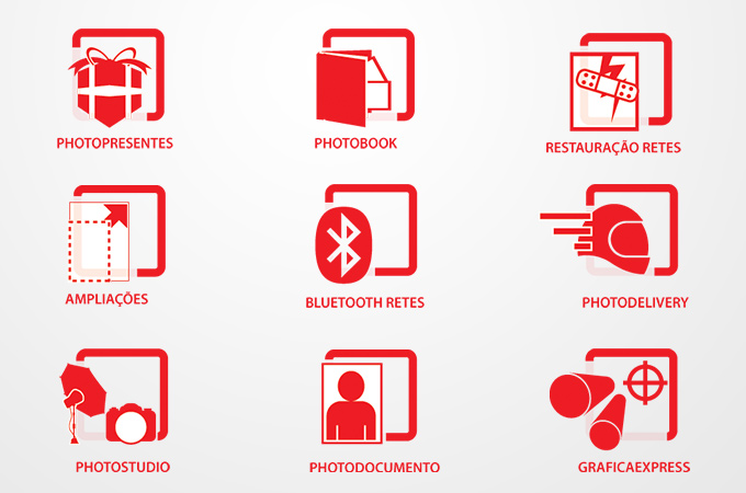 Ícones de identificação dos serviços das Lojas Retes. Aplicado na comunicação visual, material impresso, internet e nas lojas.